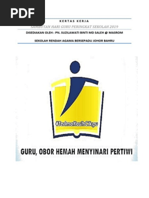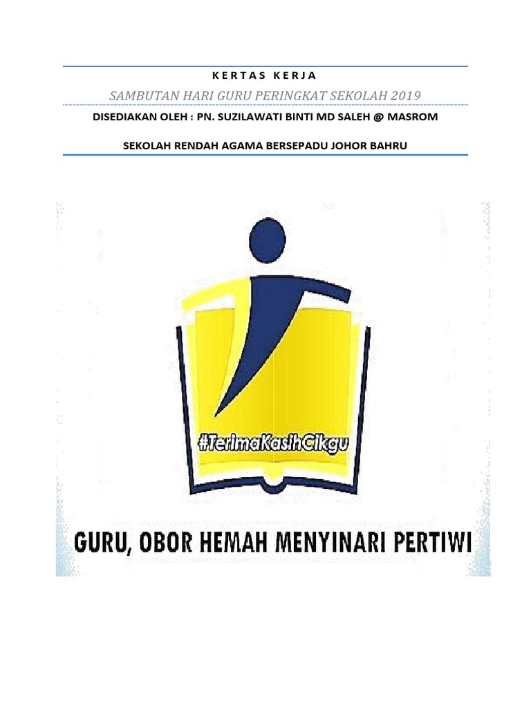 Tujuan sambutan hari guru diadakan adalah untuk pada tahun lepas tema sambutan hari guru 2019 adalah guru, obor hemah menyinari pertiwi. Kertas kerja sambutan hari guru 2018. Keputusan menteri agama ini menggantikan kma nomor 103 tahun 2015 tentang pedoman pemenuhan beban kerja guru madrasah yang bersertifikat pendidik. Hari guru nasional pada tahun 2019 mengusung tema guru penggerak indonesia maju, menyiratkan makna bahwa guru merupakan penggerak kemajuan yang telah dicapai indonesia. Tanggal 25 november juga bertepatan dengan hari pgri (persatuan guru republik indonesia).